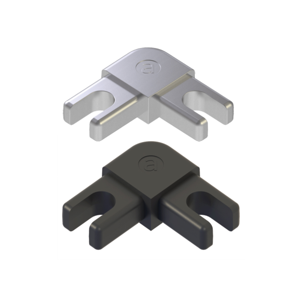 Raccordi angolari per profili in alluminio. Disponibili in plastica o in zama cromata.