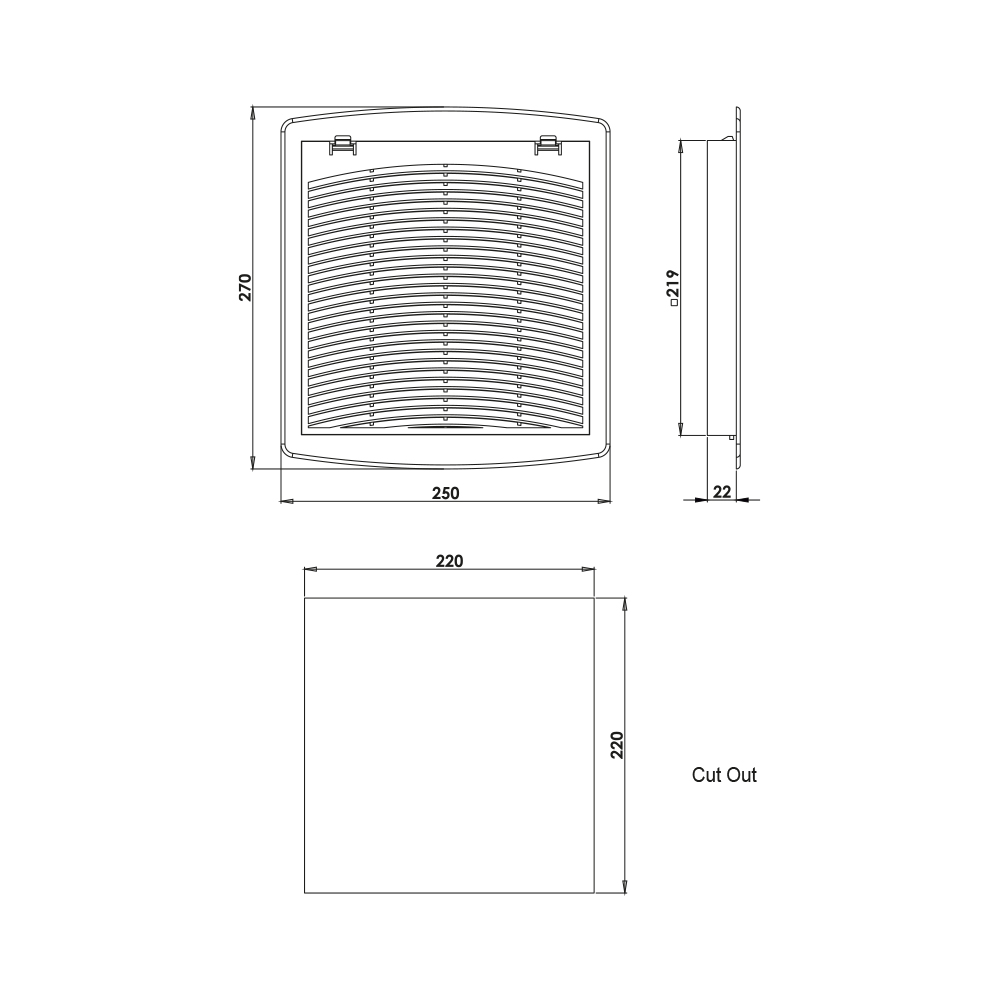 Griglia aerazione quadrata nera 220x220 mm - HP02.35.9005