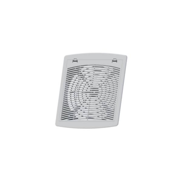 Griglia aerazione quadrata bianca 220×220 mm in ABS, per garantire ventilazione all’interno di macchinari e quadri elettrici.