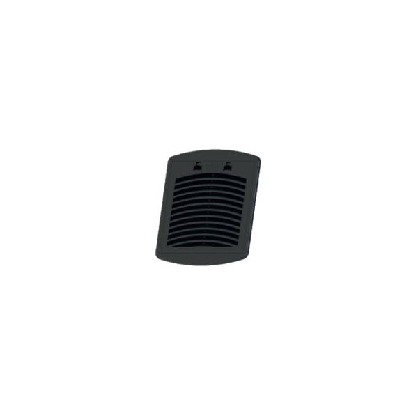 Griglia aerazione quadrata nera 125×125 mm in ABS, per la ventilazione di quadri elettrici e macchinari industriali.