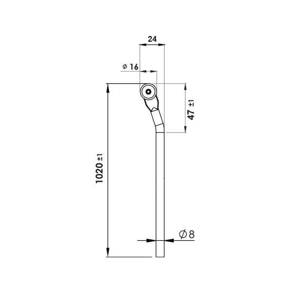 Asta curva per serratura rotonda con rotella – Lunghezza 1020 mm – ICM04.1020