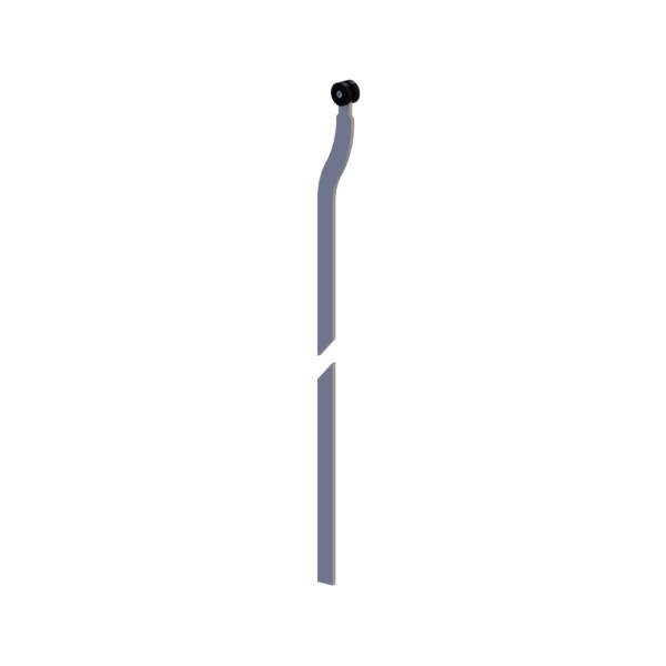 Asta piatta in metallo scorrevole con rotella. Lunghezza totale 1020 mm, con curvatura di 16 mm. Ideale per la creazione di chiusure scorrevoli ad asta su quadri elettrici ed armadi metallici.
